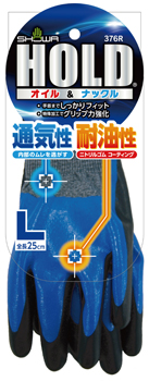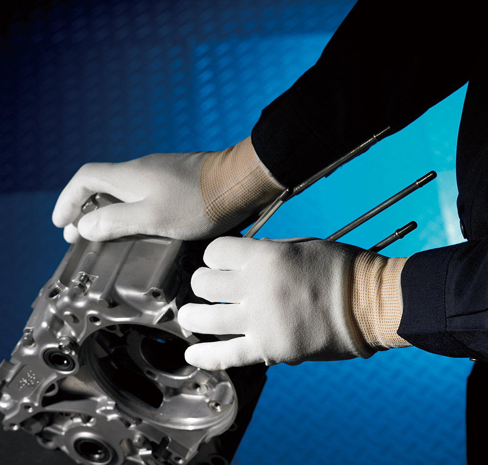 手のひらにコーティングした発泡樹脂により、油が付着した状態でも、高いグリップ力を発揮します。