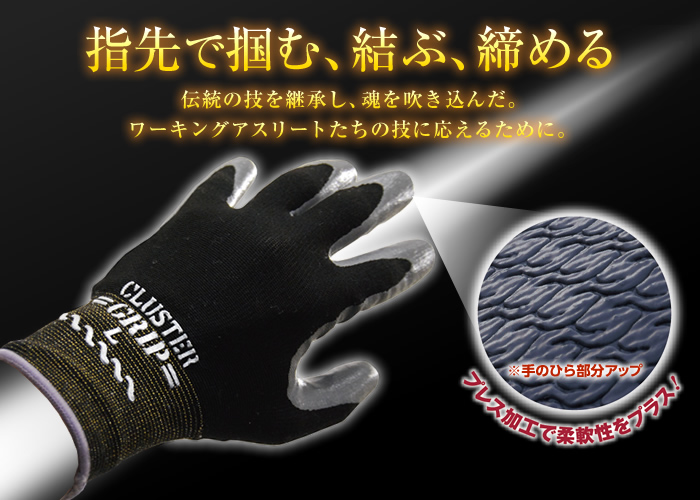 2014年1月、“S-press仕上げ”により、高い柔軟性を実現した「組立グリップクラスター」を発売いたしました。指先までしっかりフィットする手型設計を採用し、細かな作業にも対応できます