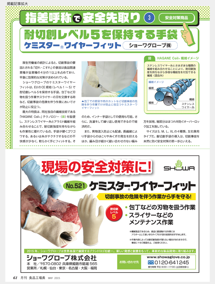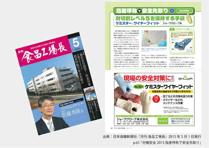 「労働安全特集」にて、切創事故を未然に防ぐ安全対策商品としてご紹介いただきました。