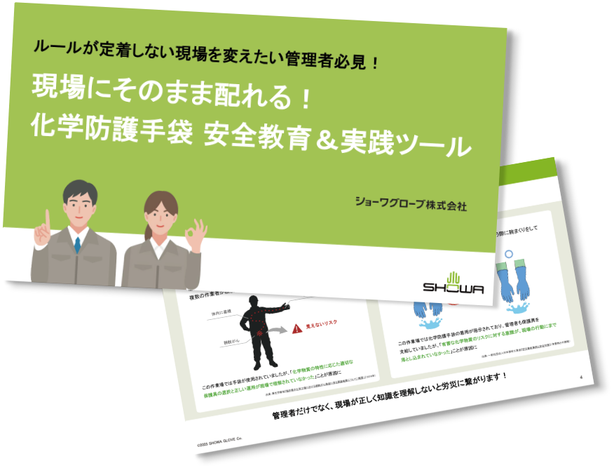 そこで、手袋メーカーである私たちショーワグローブは、作業者自らが「正しく使おう」と行動を変えるための分かりやすい「安全教育&実践ツール」をご用意しました。
